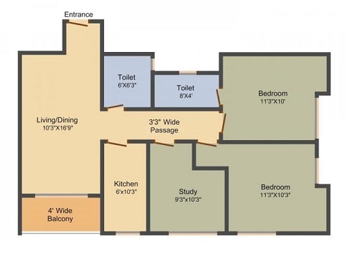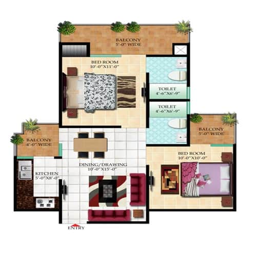 2 BHK 2T Plan: