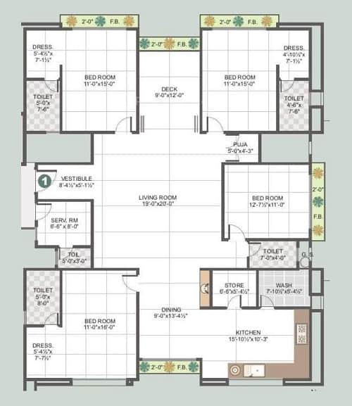 4 BHK Floor Plan: