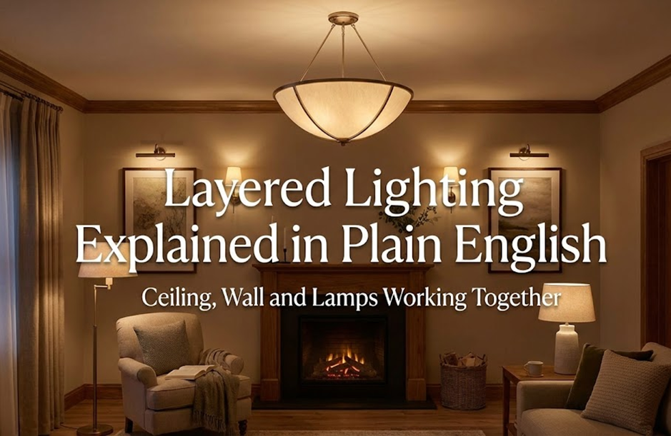 Layered lighting is a simple way to fix this. Instead of one light trying to do everything, you use several types of light that work together: ceiling lights, wall lights, and lamps. You do not need a design degree to make this work. You just need to know what each layer does and how to combine them.