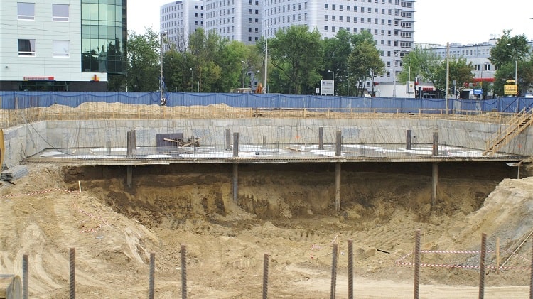 As a result, the slabs are built once each stage of excavation is completed. In terms of holding earth pressure, the slabs function similarly to struts.