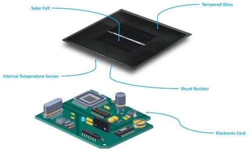 A PV Pyranometer or a reference cell irradiance sensor uses a monocrystalline silicon solar cell, which generates an electric current when exposed to light. This current is converted into millivolts (mV) via a shunt resistor located on the back of the cell. The Irradiance Sensor includes an electronic card designed to calculate solar irradiance values in W/m², with built-in temperature compensation for enhanced accuracy. The calibrated sensor is installed in the Plane of Array (POA) to precisely measure POA irradiance levels. The PV Pyranometer measures irradiance relevant to a specific PV technology with a wave length range of 400nm to 1200nm.