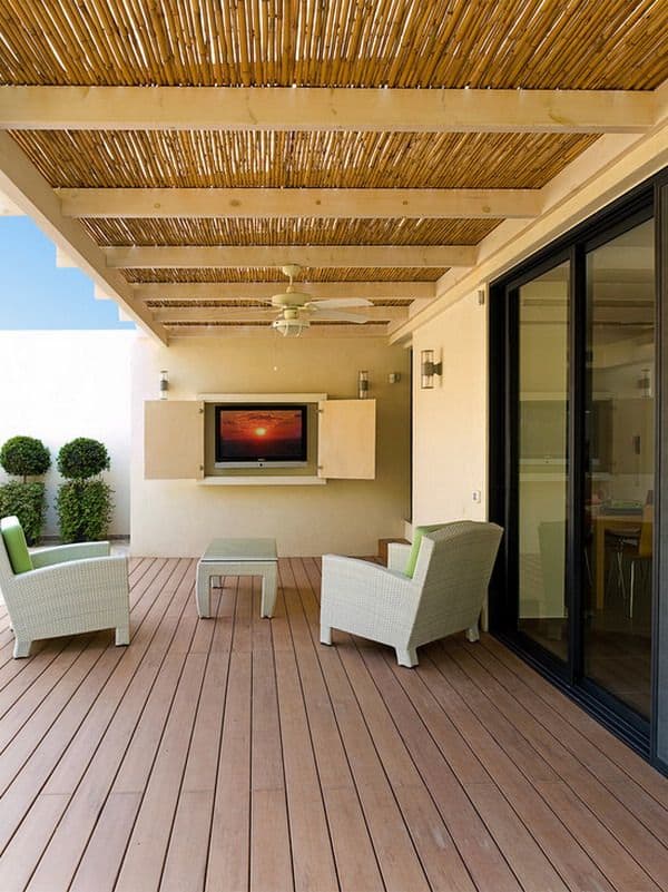Bamboo patio covers are made of woven bamboo that is interwoven with wire and are available in two styles: split and matchstick. Because the split variant is coarser, it is preferred for most installations. The matchstick is made from thin strips of the inner layer of the bamboo stalk.